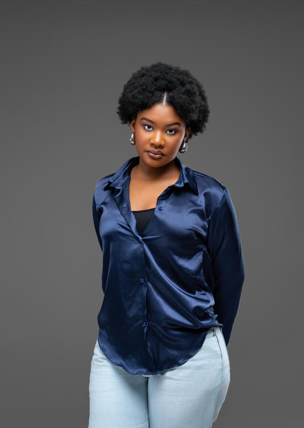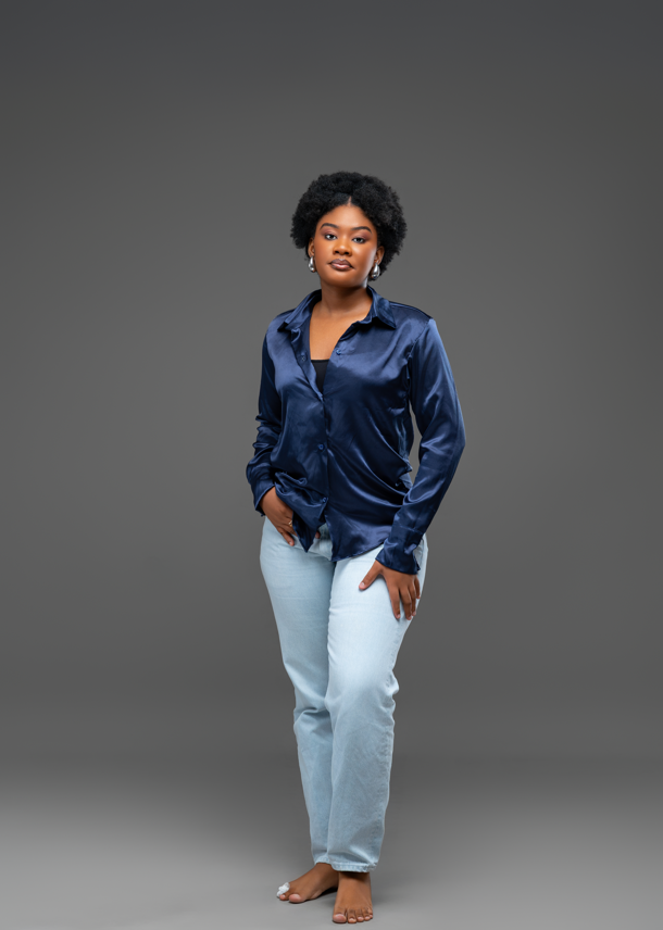 Chemisier en soie bleu nuit